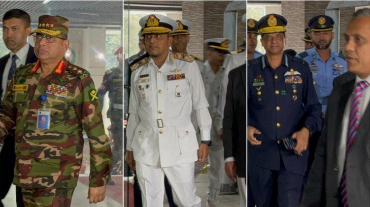 Earlier, upon their arrival at the Election Building, Senior Secretary of the EC Secretariat Akhtar Ahmed received the three service chiefs separately.